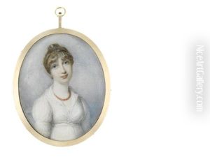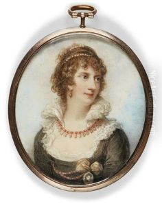 Lady Mary Henrietta Juliana Pelham Nee Osborne, Countess Of Chichester (1776-1862), Wearing White Dress With Frilled Collar, Coral Beaded Necklace, Her Brown Hair Upswept