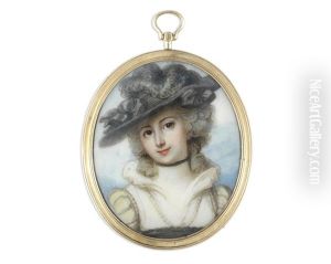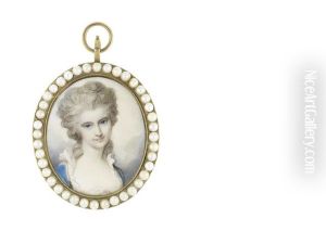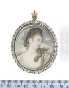 Portrait Miniature Of A Young Lady Wearing A White Dress And Bandeau In Her Powered Hair