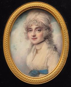 Portrait Miniature Of Miss Gunning, Head And Shoulders, Wearing A Turban And A Blue Sash