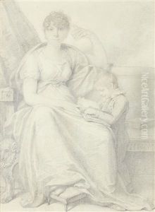 Sir John William Ponsonby, Viscount Duncannon, His Arm Around The Waist Of His Sister Lady Caroline Ponsonby (+ Sir Frederick Cavendish Ponsonby, Holding His Brother Sir William Francis Spencer Ponsonby; Recto/verso)