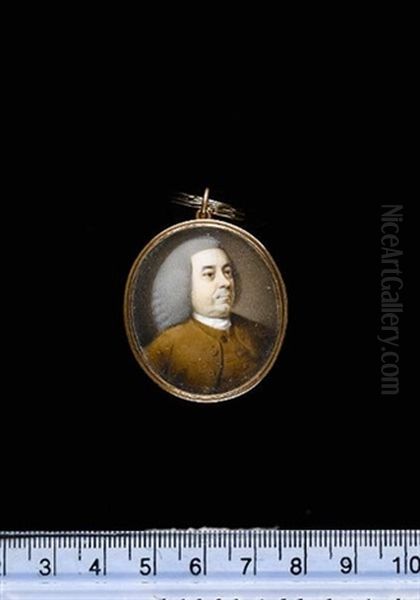 A Gentleman Wearing Brown Coat, Matching Waistcoat And Powdered Bag Wig