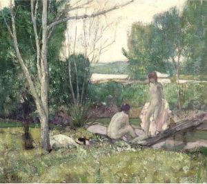 Richard Emile Miller was an American Impressionist painter known for his works that often featured women in interior and outdoor settings, capturing the effects of light and color. Born on March 22, 1875, in St. Louis, Missouri, Miller displayed an early talent for drawing and painting. He pursued his artistic education at the School of Fine Arts at Washington University in St. Louis and later at the Académie Julian in Paris, where he studied under renowned instructors such as Jean-Paul Laurens and Benjamin Constant.