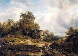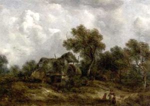 Landscape With Hay Cart On Track, Figures In Distance And On Wooded Hillside