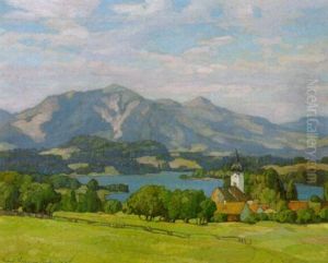 Bayerische Seelandschaft Mit Klosterkirche (ammersee?)
