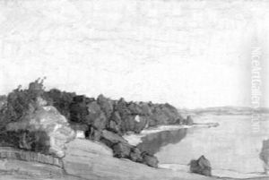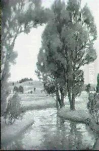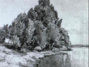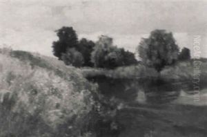 Landschaftsausschnitt Mit Baumgruppe Am Wasser...