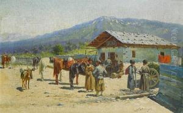 Caucasian Scene Before The Mountains