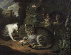 Trois Chats Dans Un Paysage