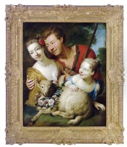 Portrait Of Mrs. Mytton Of Halston Nee Letitia Owen, Seated In A Landscape With Her Two Young Daughters, Letitia And Anna