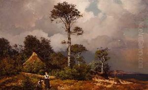 Girls Picking Flowers In A Landscape