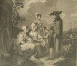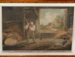 An Old Lady Sitting By A Tree; A Farmyard Scene With Dove Roosting Overhead