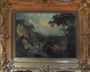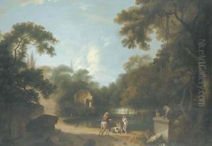 Italianate River Landscape With Figures Seatedon The Bank, Before A Castle