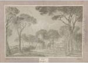 A Wooded River Landscape With An Angler And Classical Ruinsbeyond