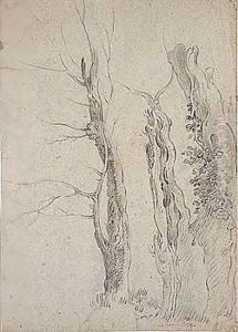 Two Figures Fishing By A Country Pool, Ruins Beyond
