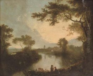 Figures On A Riverbank In An Extensive Italianate Landscape