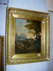 An Italianate Wooded Landscape With A Traveller Resting Near A Path, A Mountain Beyond