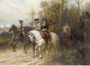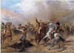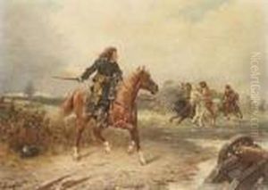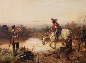 A Cavalier On A Chestnut Horse Being Ambushed By Roundheads