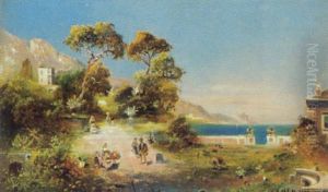 Peasants Strolling In A Coastal Landscape