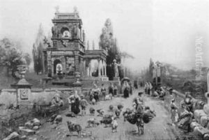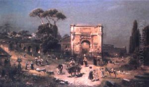 Romische Ruinen Mit Reisenden Und Handlern