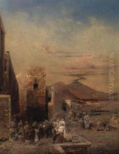 Kleinstadt Am Golf Von Neapel - Im Vordergrund Auf Einem Platz Hirten...