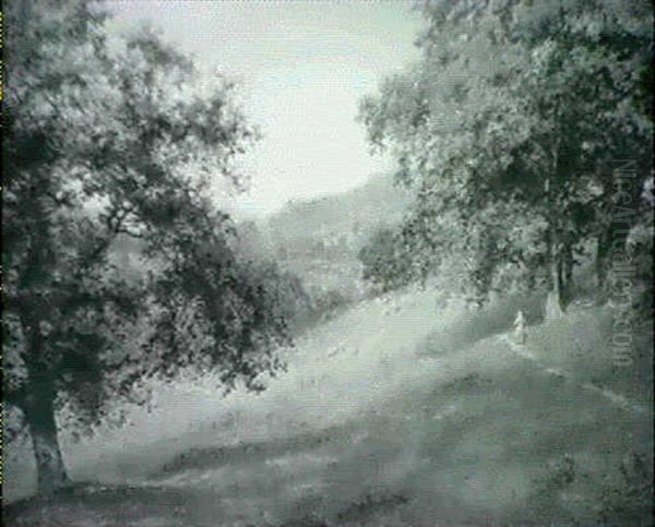 A Landscape With Sheep Grazing And A Figure On A Country Path