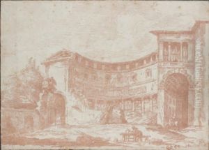 Une Terrasse Dans Le Jardin De Villa Pamphili, Des Figures Avec Une Brouette Au Premier Plan