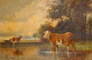 Cows Watering At A Stream While A Storm Approaches