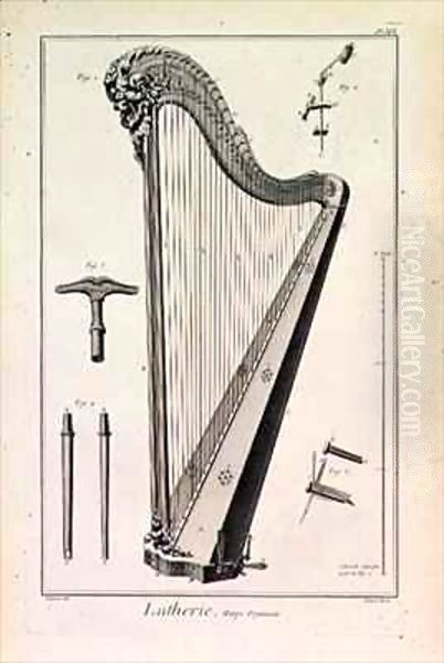 Plate XIX, A harp from the Encyclopedia of Denis Diderot (1713-84) and Jean le Rond d'Alembert (1717-83)