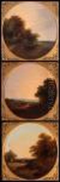 Figures And Horses In Country Landscapes With Cottages