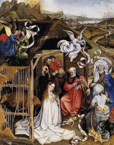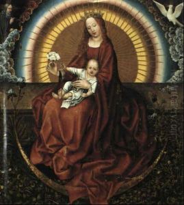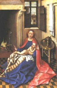 Triptych of Madonna lactans between an angel playing the harp and an angel playing the lute