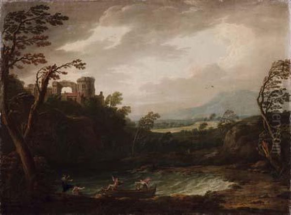 Paesaggio Con L'approdo Di Una Barca Presso Un Castello