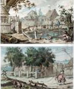The Village Pond, Young Boys Encouraging A Dog To Chase Ducks; And Kite-flying Near A Village