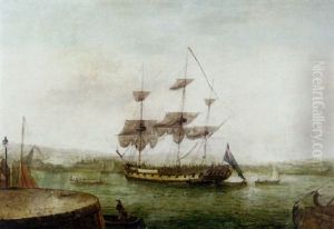 A 74-gun Third Rate Heading Out Of Portsmouth Harbour With Other Ships Of The Fleet Close-by