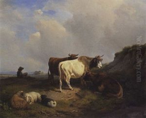 Mountain Landscape With Cattle And Sheep Before The Storm.