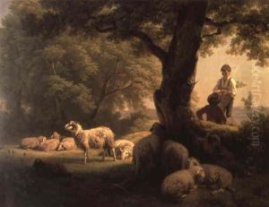 Zwei Rauchende Hirtenknaben Mit Schafen.