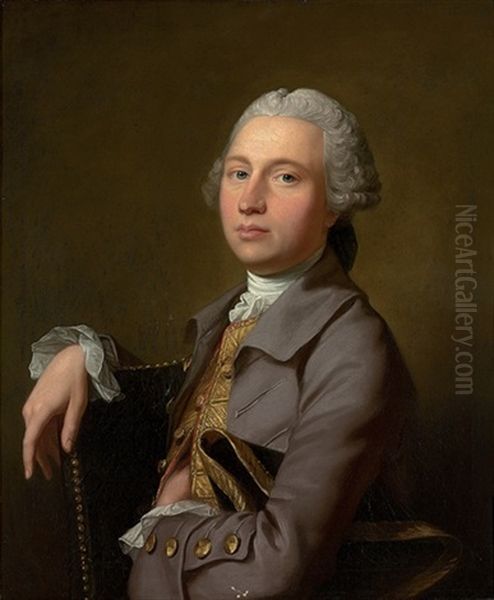 Portrait Of A Gentleman In A Grey Coat And Gold Embroidered Waistcoat