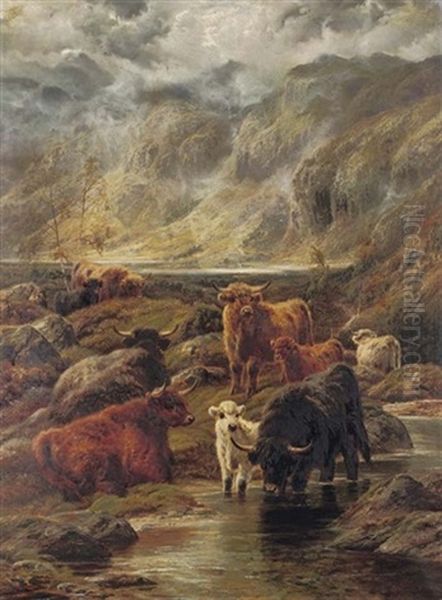 Highland Cattle Watering (+ Sheep By A Loch; 2 Works)