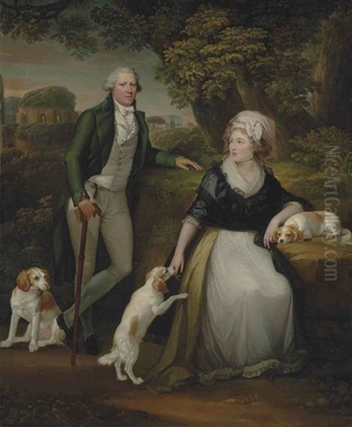 Double Portrait Of Sir Andrew Corbet Corbet, Bt., Of Stoke On Trent (1752-1823), And His Wife Hestor, Full-length, With Their Spaniels Bow