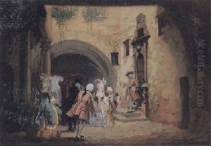 Galante Szene Vor Dem Rathaustor In Rothenburg Ob Der Tauber