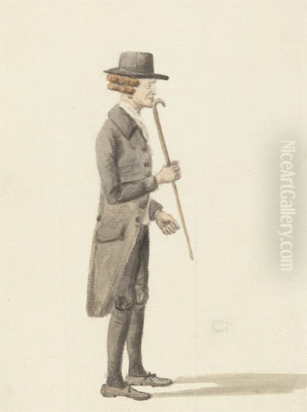 Full-length Figure of a Man Dressed in Black Holding a Walking Stick
