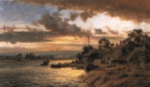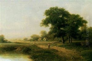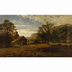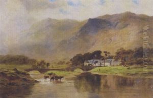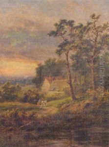 On The Shores Of A Lake, With A Church Beyond, Bygland, Norway; Berry Pickers, Bygland, Norway (pair)