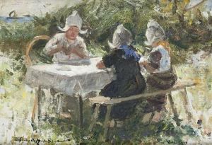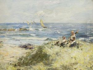 Fishergirls With Baskets Awaiting The Catch