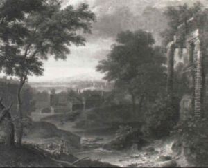 An Extensive River Landscape With Elegant Company By Classical Ruins
