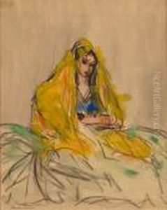 Girl Seated With Elbow On Her Knee And Book At Her Side