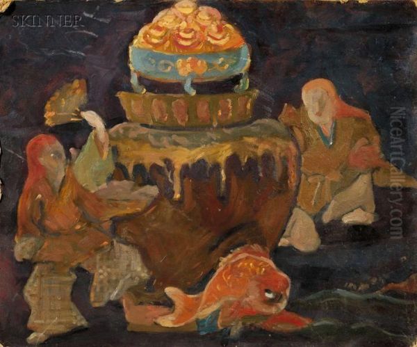 Bring the timeless beauty of Robert Henry Logan's Lot Of Three Asian Still Lifes into your home with a handmade oil painting reproduction. Carefully recreated on canvas by skilled artists using traditional techniques, this piece captures the delicate brushwork, subtle light, and vibrant color of the original masterpiece. With museum-level quality and rich texture, it brings elegance and artistic depth to any space. Enjoy free shipping and make this masterpiece a part of your personal collection.