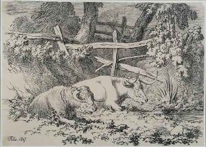 A Country Lane with Haystack and Gate