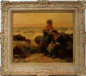 Fishergirls Mending Nets On The Beach