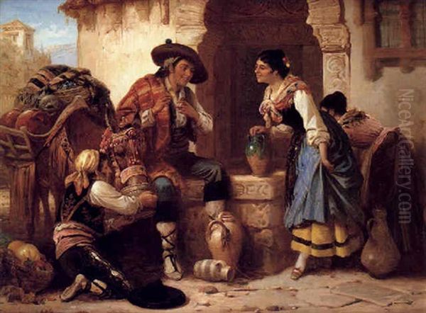 Galanteo En La Fuente Oil Painting by Robert Kemm