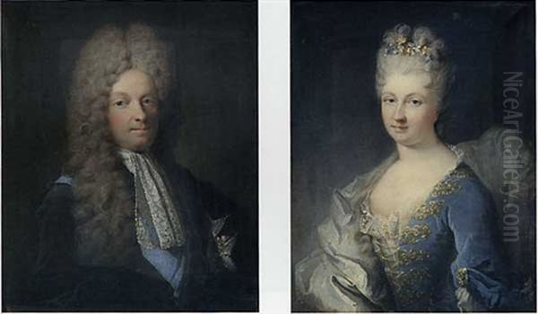 Portrait D'un Homme De Qualite Arborant Le Cordon Bleu Et La Plaque De L'ordre Du Saint-esprit (+ Portrait De Femme De Qualite, En Robe Bleue, Le Sein Droit Decouvert, Des Fleurettes Dans Les Cheveux;