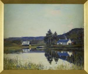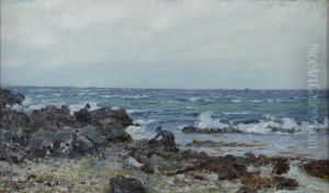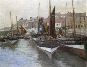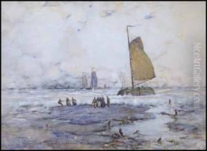 A Coastal Scene Of Sail Ships And Breton Women On Shore