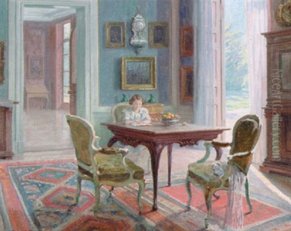Bring the timeless beauty of Robert Panitzsch's Herskabeligt Interior Med Husets Dater Laesende Ved Et Bord into your home with a handmade oil painting reproduction. Carefully recreated on canvas by skilled artists using traditional techniques, this piece captures the delicate brushwork, subtle light, and vibrant color of the original masterpiece. With museum-level quality and rich texture, it brings elegance and artistic depth to any space. Enjoy free shipping and make this masterpiece a part of your personal collection.